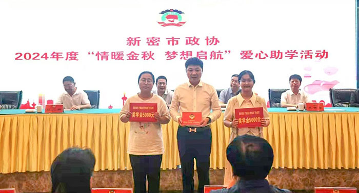 8月19日,新密市政協舉行“情暖金秋、夢想起航”愛心助學活動。市政協黨組書記、主席袁斌,市政協副主席宋林祥、鄭二卿、虎偉東、張淑偉,市二級調研員孫宏偉出席活動。市政協提案委兼職副主任、河南榮盛科技集團董事長楚科奇作為參與資助的政協委員參加活動。