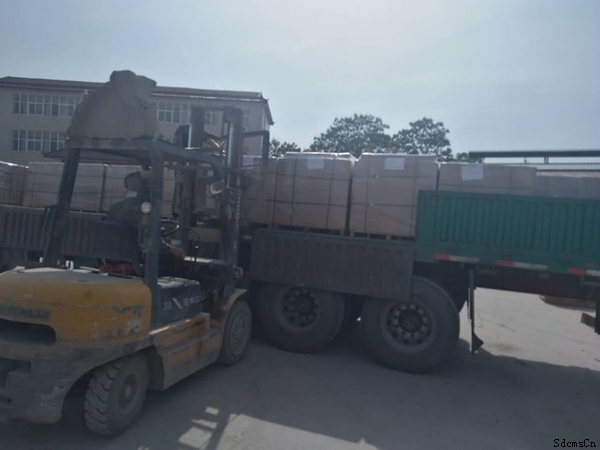 榮盛耐材工作人員將產品裝車