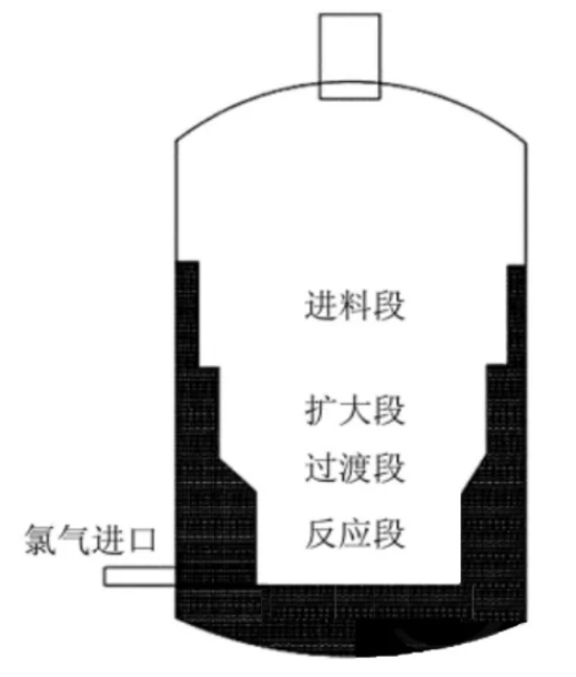 2、擴大段。沸騰氯化爐上部是用于降低氣流速度,而使得未反應的物料在重力作用下返回至反應段繼續進行反應,有效利用物料。